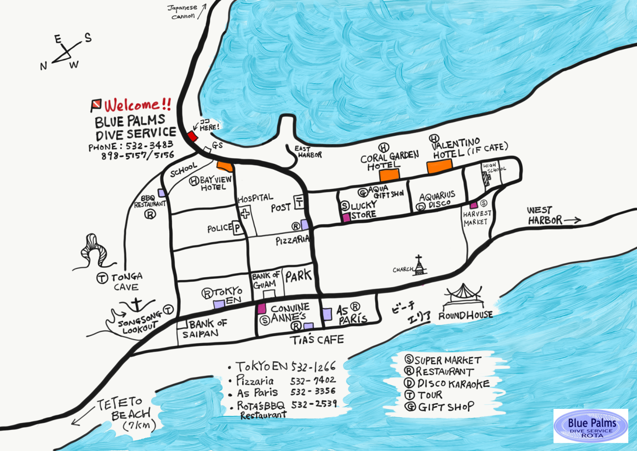 ロタ島の南西方向にあたる「ソンソン村」と、空港から近い「シナパロ村」です。